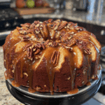 A moist, spiced apple cake loaded with toasted pecans and topped with a luscious caramel glaze. This comforting dessert combines the warmth of cinnamon apples with the rich sweetness of homemade caramel — perfect for fall gatherings or cozy weekends.