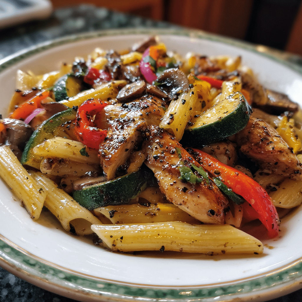 This Balsamic Roasted Veggie Pasta with Grilled Chicken is a flavorful and wholesome meal featuring tender grilled chicken, roasted vegetables tossed in a tangy balsamic glaze, and pasta coated with olive oil and Parmesan. It’s hearty, healthy, and perfect for a weeknight dinner or meal prep.