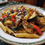 This Balsamic Roasted Veggie Pasta with Grilled Chicken is a colorful, wholesome dish that’s bursting with flavor. Tender grilled chicken meets caramelized vegetables and a tangy-sweet balsamic glaze, all tossed with perfectly cooked pasta. Every bite is a harmony of textures — juicy chicken, roasted veggies, and pasta coated in a light yet rich dressing. I once made this dish with a sprinkle of feta and a handful of fresh basil, and it added the perfect finishing touch. Whether for a weekday dinner or weekend gathering, this pasta is a vibrant and satisfying meal that brings freshness and comfort together beautifully.