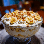 Easy Banana Pudding Fluff Salad is a nostalgic dessert that brings together simplicity, comfort, and crowd-pleasing flavor. This recipe is inspired by the classic banana pudding many of us grew up with, but it is transformed into a light, fluffy, no-bake salad that is perfect for potlucks, holidays, and family gatherings. I first made this when I needed a quick dessert that could be prepared ahead of time, and it immediately became a reliable favorite. The creamy texture, sweet banana flavor, and soft vanilla wafers create a dessert that feels indulgent yet effortless. What makes this recipe especially appealing is how approachable it is. There is no baking involved, no complicated steps, and no special equipment required. It is the kind of dish that disappears quickly and always earns compliments. Whether served as a dessert or a sweet side dish, this banana pudding fluff salad is a timeless recipe that never goes out of style.