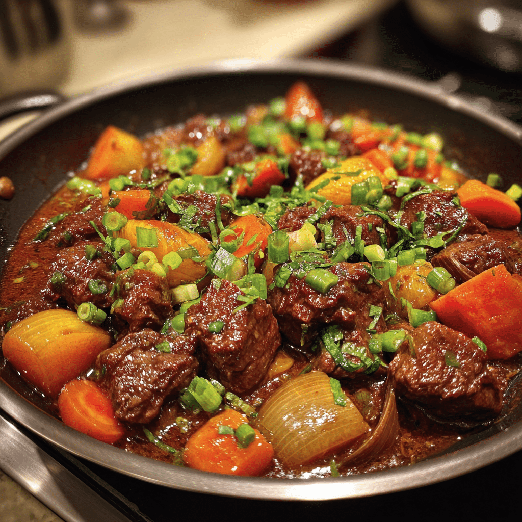 This recipe usually serves 4 to 6 people. Preparation takes about 20 minutes, while cooking time ranges from 1.5 to 2 hours depending on how tender you want the beef. Allowing the stew to rest for a few minutes before serving improves flavor.