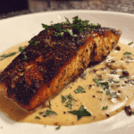 Blackened salmon with creamy Dijon sauce is a dish that delivers bold flavors with minimal effort. The perfectly seared salmon, coated in smoky spices, pairs beautifully with the tangy creaminess of the sauce, making every bite satisfying and memorable. Quick enough for weeknights yet impressive enough for guests, it’s a recipe that belongs in your regular rotation. Whether you enjoy it with roasted vegetables, rice, or potatoes, this dish is proof that a few simple ingredients can create something extraordinary.