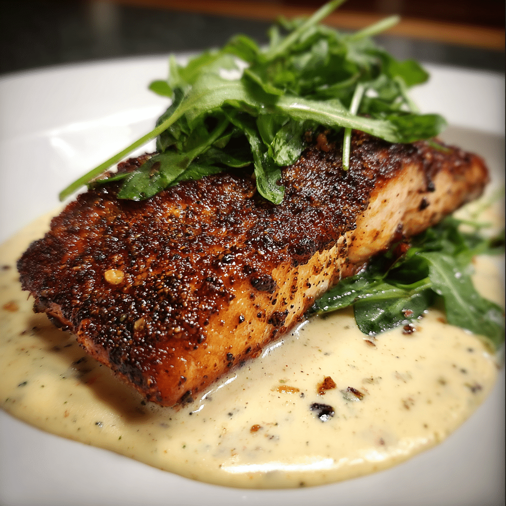 Blackened Salmon with Creamy Dijon Sauce – Bold Flavors Made Simple
