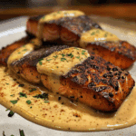 Blackened Salmon with Creamy Dijon Sauce is a bold, flavorful dish featuring perfectly seared salmon fillets coated in smoky Cajun-style seasoning, served with a rich, tangy Dijon cream sauce. It’s an elegant yet easy weeknight dinner that feels restaurant-worthy.
