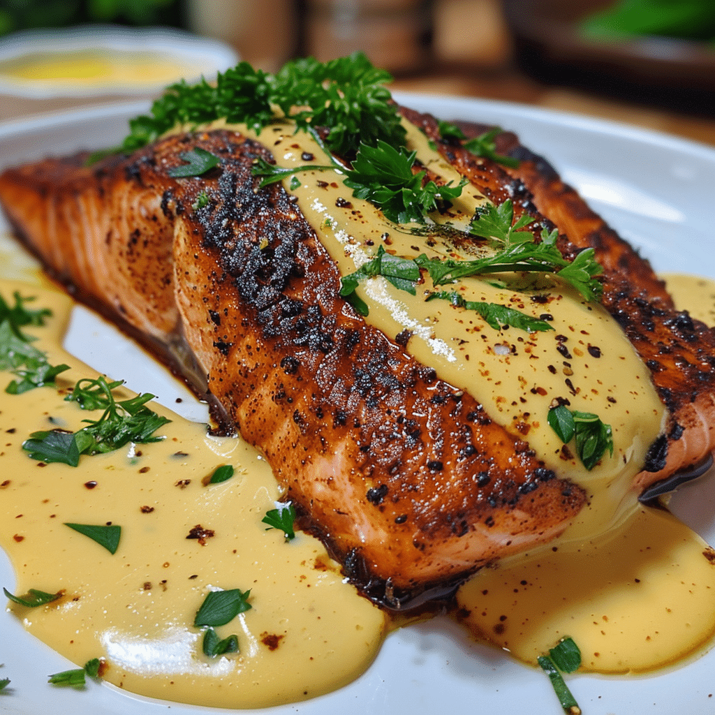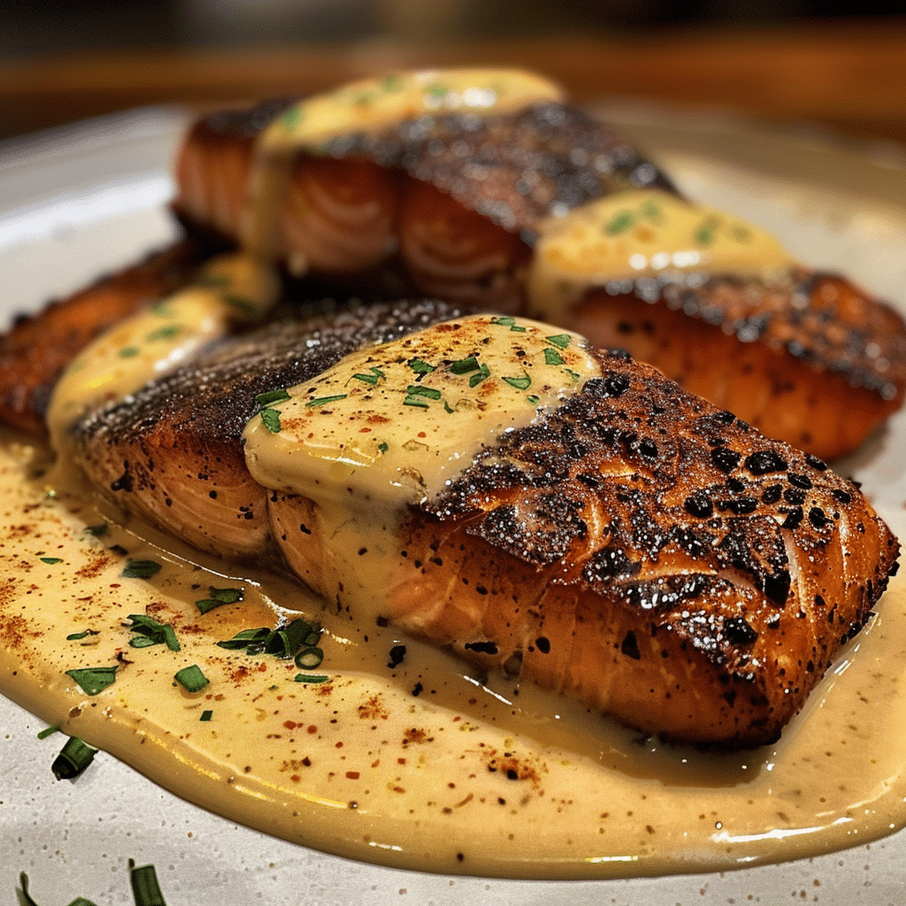 Blackened Salmon with Creamy Dijon Sauce: A Bold, Elegant Dish That Melts in Your Mouth