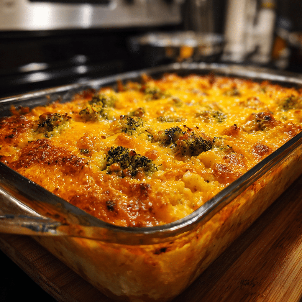 Broccoli cheese rice casserole is a comforting, creamy baked dish made with tender rice, broccoli florets, and melted cheese, perfect as a family-friendly side or vegetarian main course.