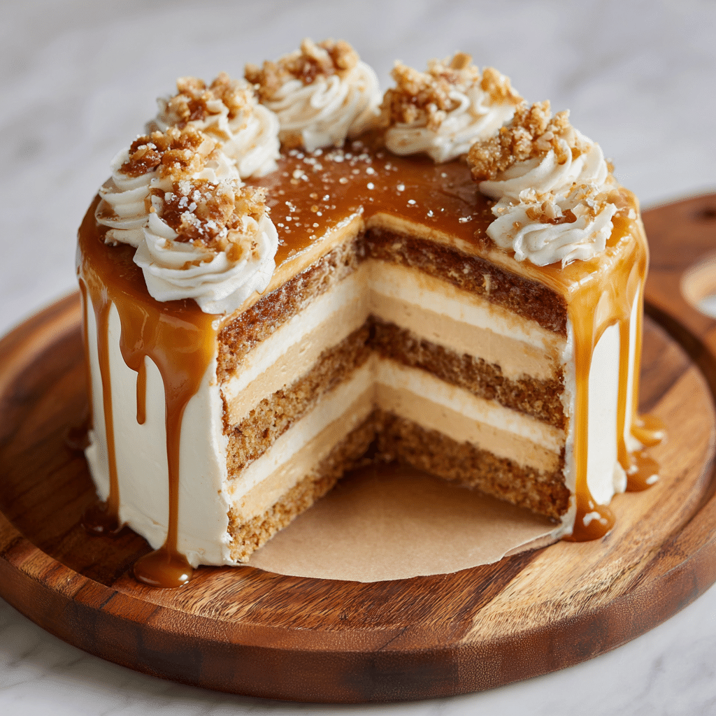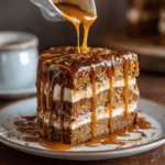 A rich and decadent caramel coffee layer cake featuring moist coffee-infused cake layers, silky caramel frosting, and a luscious caramel drizzle. Perfect for coffee lovers and special occasions.