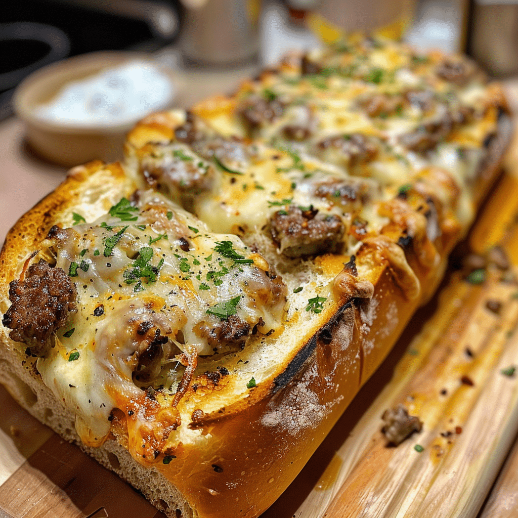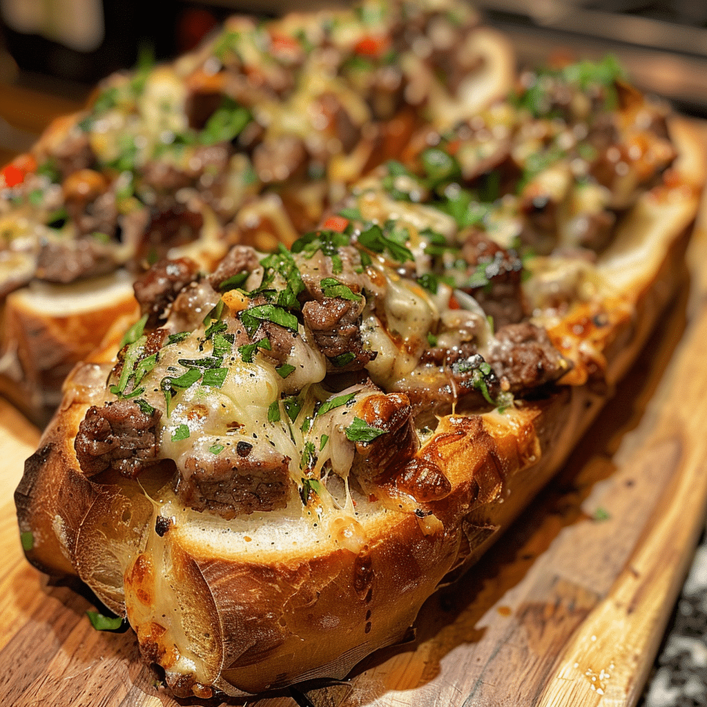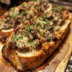 Cheesesteak-Stuffed Garlic Bread Loaf is the ultimate indulgence — a rich, cheesy, buttery creation that combines everything you love about comfort food into one showstopping dish. With juicy beef, melted cheese, and golden garlic bread, it’s a meal that’s guaranteed to impress. Whether served as a hearty main course or sliced into party-sized portions, this recipe is pure, melty perfection — the kind of dish that disappears the moment it hits the table.