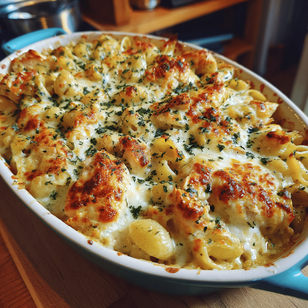 This recipe is everything great comfort food should be—creamy, cheesy, hearty, and deeply satisfying. It’s easy to prepare, uses simple ingredients, and can be customized to suit your taste. The combination of Alfredo sauce, tender chicken, and perfectly baked pasta creates layers of flavor that feel both classic and comforting. The dish holds up beautifully for leftovers, reheats well, and can even be assembled in advance for weeknights when time is short. Whether served alone or alongside a fresh green salad, this baked pasta is delicious, dependable, and sure to become a household favorite.
