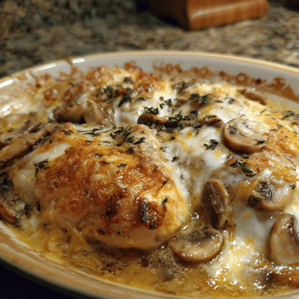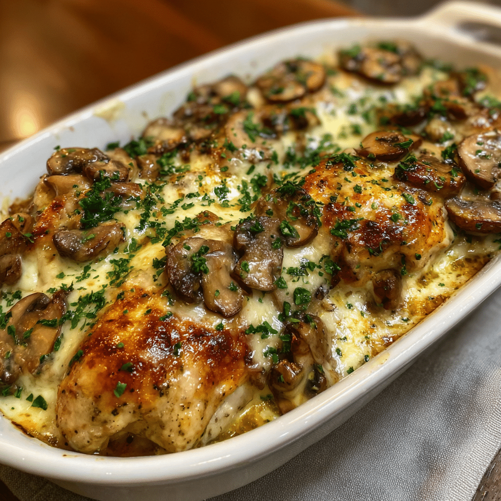 PrintCheesy Chicken Marsala Bake: A Comforting Twist on the Classic Dish