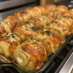 These Cheesy Garlic Butter Rollups are the perfect blend of crisp, buttery bread and melty cheese—simple, comforting, and guaranteed to please everyone at the table. With their golden exterior and irresistible garlic aroma, they’re ideal for any occasion, from game nights to casual family dinners. I once made these with a mix of mozzarella and cheddar, and the combination was absolutely heavenly. Serve them hot from the oven, watch the cheese stretch with every pull, and enjoy the kind of homemade comfort that never fails to make people smile.