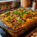 Cornbread chili poke bake is the ultimate comfort dish, combining the rich flavors of a savory chili with the soft, slightly sweet texture of cornbread. This layered casserole-style meal is hearty, filling, and perfect for feeding a family or a crowd. The cornbread is baked until golden, then “poked” to allow a generous layer of chili to soak through, ensuring every bite is bursting with flavor. It is a creative twist on two beloved dishes—chili and cornbread—bringing them together into a single pan for easy preparation and serving. Not only is this recipe delicious, but it is also versatile: you can adjust the spice level, use different proteins, or add extra toppings like cheese, jalapeños, or sour cream. Ideal for game nights, weeknight dinners, or potluck gatherings, this cornbread chili poke bake is as comforting as it is satisfying.