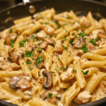 Creamy Chicken & Mushroom Pasta is the ultimate comfort food — indulgent, flavorful, and easy to make. The tender chicken, earthy mushrooms, and silky sauce create a harmonious balance of flavors that feels elegant yet homely. Whether you’re cooking for guests or just treating yourself, this pasta delivers everything you could want from a cozy, satisfying meal. Once you make it, it’s sure to become a regular on your dinner rotation — a true classic in your kitchen.