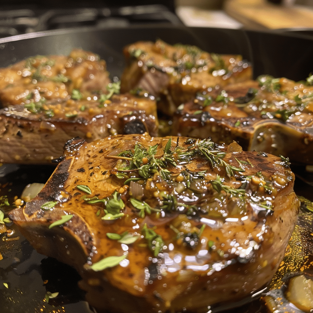 Herb-Infused Smothered Pork Chops with Apple Cider Glaze are juicy, pan-seared pork chops cooked to perfection and smothered in a rich, savory-sweet sauce made with apple cider, herbs, and caramelized onions. The glaze adds a subtle tang and sweetness that perfectly complements the tender, herbed pork.