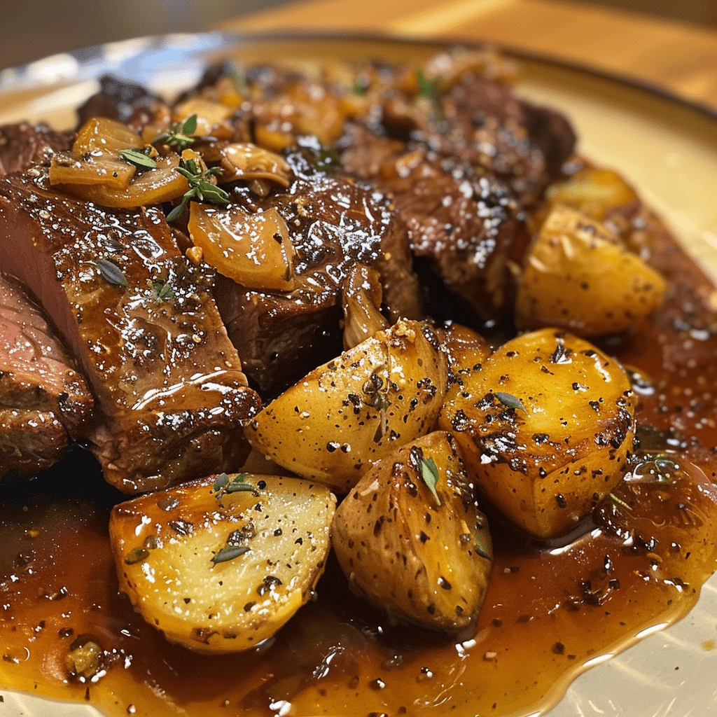 Tender, juicy strips of beef glazed in a sweet and savory honey-garlic sauce, served alongside crispy roasted potatoes — a quick, mouthwatering dinner ready in just 30 minutes!