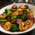 Honey garlic shrimp, sausage, and broccoli is a quick and flavorful dinner that combines sweet, savory, and smoky elements all in one pan. Juicy shrimp, smoky sausage, and crisp-tender broccoli are tossed in a sticky honey garlic sauce that coats every bite. What makes this dish special is how fast it comes together—perfect for weeknights when you want something delicious without spending hours in the kitchen. I tried it once with chicken sausage instead of smoked sausage, and it turned out a little lighter but just as flavorful. This dish proves that with the right balance of ingredients, you can make a wholesome, satisfying meal that feels like takeout but is made right at home.