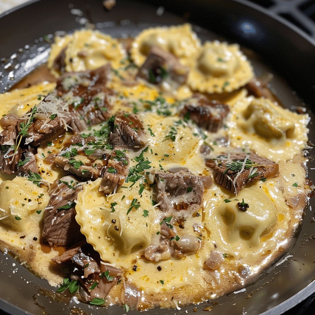 One-Skillet Garlic Butter Steak & Cheese Ravioli – Easy Gourmet Dinner