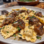 If you’re craving a rich, indulgent dinner that feels restaurant-worthy but comes together effortlessly, this One-Skillet Garlic Butter Steak & Cheese Ravioli is the perfect choice. Juicy, seared steak slices mingle with pillowy cheese ravioli, all tossed in a luxurious garlic butter sauce that’s silky, savory, and full of flavor. The best part? It’s all cooked in one skillet, which means minimal cleanup and maximum satisfaction. I first made this on a busy weeknight, and it instantly became a favorite—it’s elegant enough for guests but simple enough for a quick family meal. The garlic butter infuses the steak and pasta with mouthwatering richness, while a sprinkle of Parmesan ties it all together. Every bite is creamy, cheesy, and utterly satisfying—a true comfort meal made in under 30 minutes.