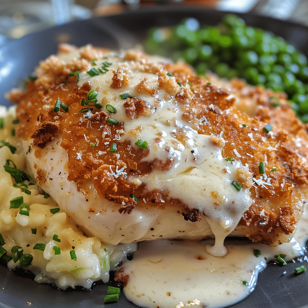 This dish perfectly balances texture and flavor: crisp, cheesy crust on the outside and juicy, flavorful chicken on the inside. The creamy garlic sauce ties it all together with its silky richness and subtle tang. It’s made with basic ingredients, yet it feels indulgent and special—like something straight from a fine-dining restaurant. Plus, the entire recipe comes together in under an hour, making it ideal for busy nights when you still want something impressive and homemade.