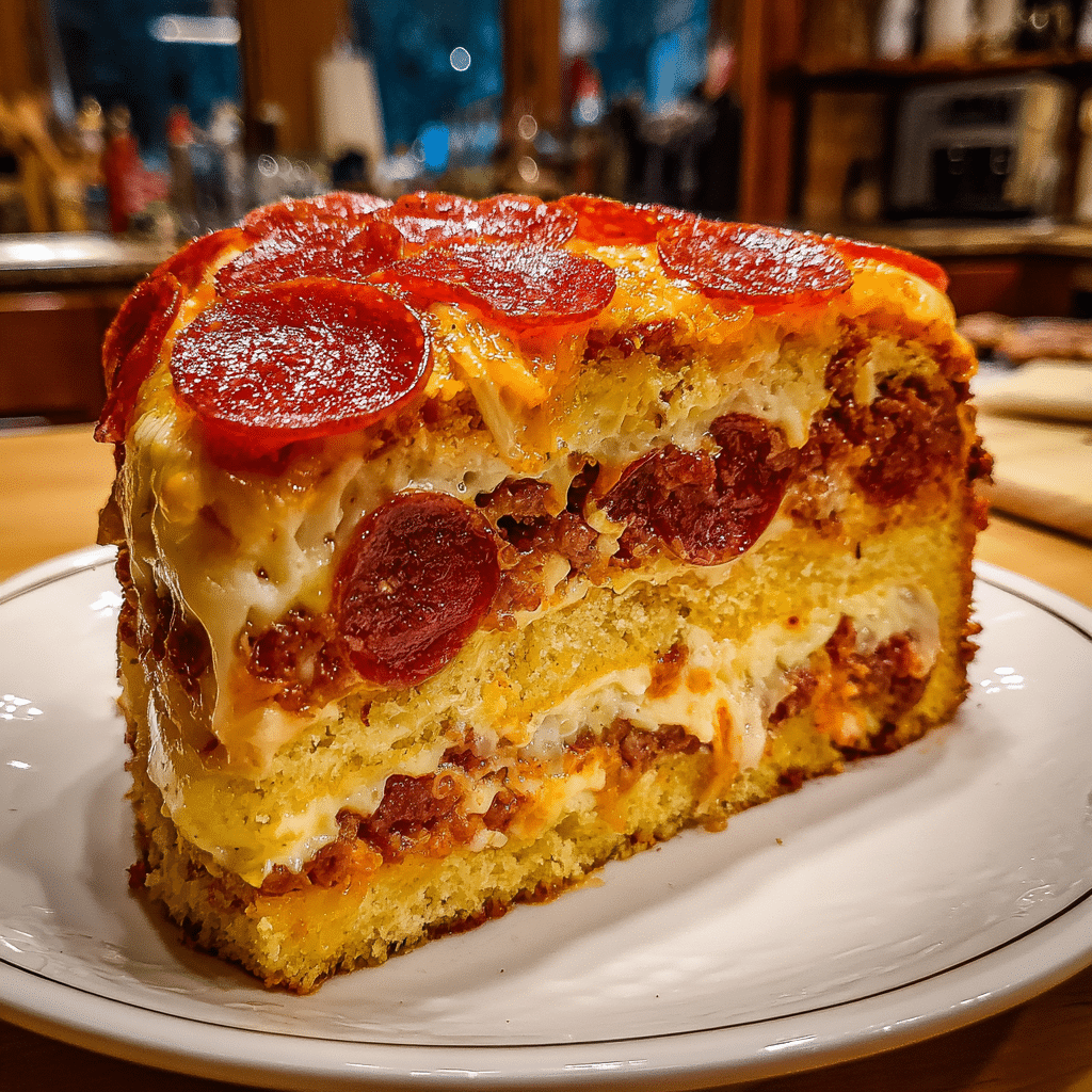 Pepperoni Pizza Layer Cake – A Tower of Cheesy Delight