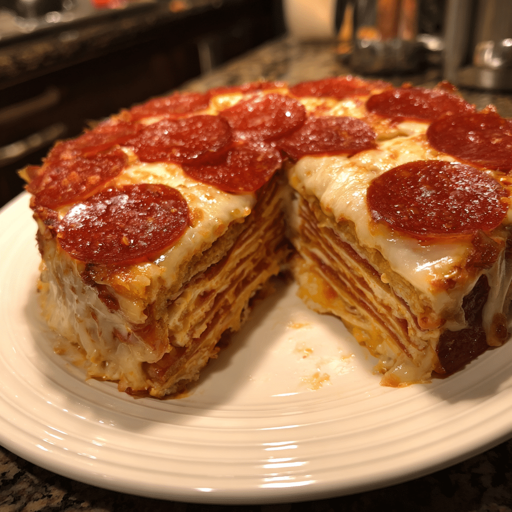A fun and indulgent twist on traditional pizza — this Pepperoni Pizza Layer Cake features multiple layers of cheesy, saucy, pepperoni-topped pizza stacked together into a towering treat that’s part pizza, part celebration cake.