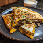 This recipe is quick to prepare, deeply flavorful, and highly customizable. It combines familiar ingredients in a creative way that feels both comforting and exciting. The quesadillas are crispy on the outside, gooey on the inside, and packed with savory steak flavor in every bite.