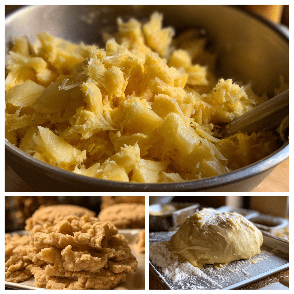 Crushed pineapple is the star ingredient, adding natural sweetness, moisture, and a gentle tang. It is important to drain it well to avoid excess liquid.