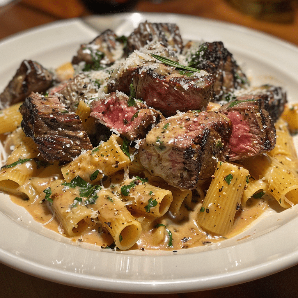 Cajun Steak Tips in Cheesy Rigatoni Parmesan Sauce is a bold, creamy, and spicy pasta dish featuring tender seared steak bites tossed with rigatoni in a rich Parmesan cheese sauce infused with Cajun seasoning — a perfect mix of comfort and heat for steak and pasta lovers.