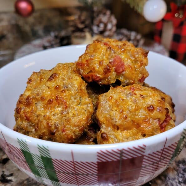Rotel adds tang, mild heat, and moisture. It brightens the flavor and prevents the sausage balls from feeling heavy.