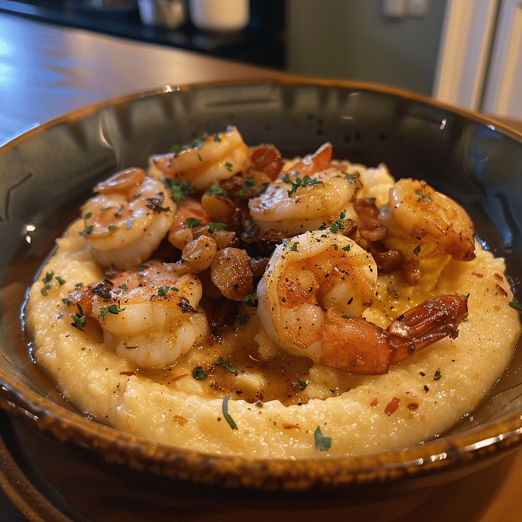 A Southern classic made with creamy, buttery grits topped with tender shrimp sautéed in a savory garlic-bacon sauce.