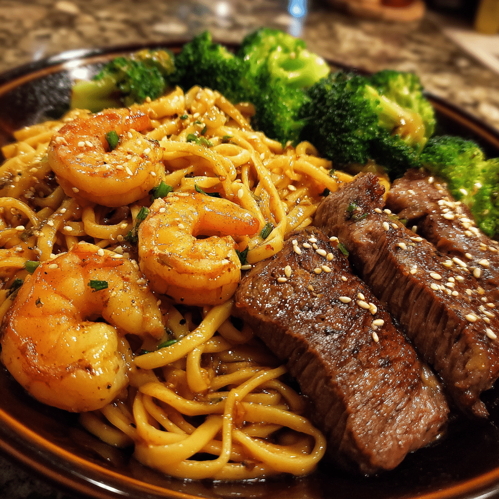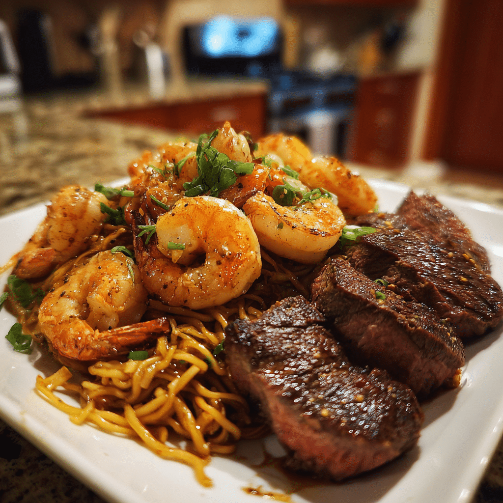 Shrimp and Steak Teriyaki Noodles are the perfect fusion of comfort and elegance — tender steak, succulent shrimp, crisp vegetables, and perfectly coated noodles all bathed in a glossy teriyaki glaze. The flavors are bold yet balanced, and the entire dish comes together in just half an hour. Whether you’re cooking for family or guests, this surf-and-turf stir-fry is guaranteed to impress with its vibrant colors, rich aroma, and irresistible flavor.