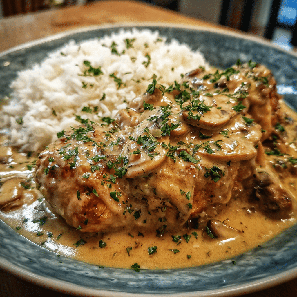 Serve the creamy chicken & gravy over mashed potatoes, rice, or egg noodles. Garnish with chopped parsley for a fresh finish.