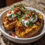 Taco potatoes are the perfect way to combine the comfort of baked potatoes with the bold, zesty flavors of tacos. Instead of a tortilla, a fluffy baked potato becomes the base for seasoned ground beef, melted cheese, and all your favorite toppings. It’s hearty, filling, and customizable, making it a hit for both family dinners and casual gatherings. I first tried making these with sweet potatoes, and the natural sweetness paired with the spicy taco meat beautifully—it was an unexpected but delicious twist. Whether you stick with traditional russets or experiment with different potatoes, taco potatoes are a fun, creative way to shake up taco night while still delivering the flavors everyone loves.